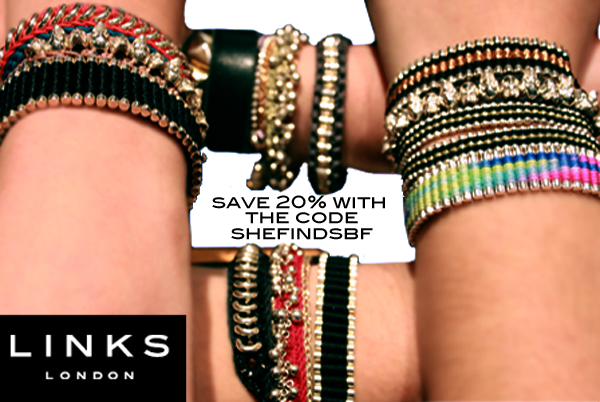 Win It |  | | Links of London Friendship Bracelets: Knock Your Besties Off Your Holiday Shopping List | | | | | | | If your BBFs already own designer iPhone cases and rock flourescent Cambridge Satchel Co. Bags, don't despair. Your girls will love the Links of London Friendship Bracelets (our editors can't get enough). Yes, you read that correctly, friendship bracelets. Just like the ones you exchanged in middle school - except way chicer. Think sterling silver hardware, handwoven construction and engraved charms. Enticing, right? Use our exclusive promo code - shefindsbf at checkout - and you'll save 20% on your purchase so you can start to crossing people off your holiday gift list. Psst! Share the code with your friends so you can get a few, too! | | | | | |